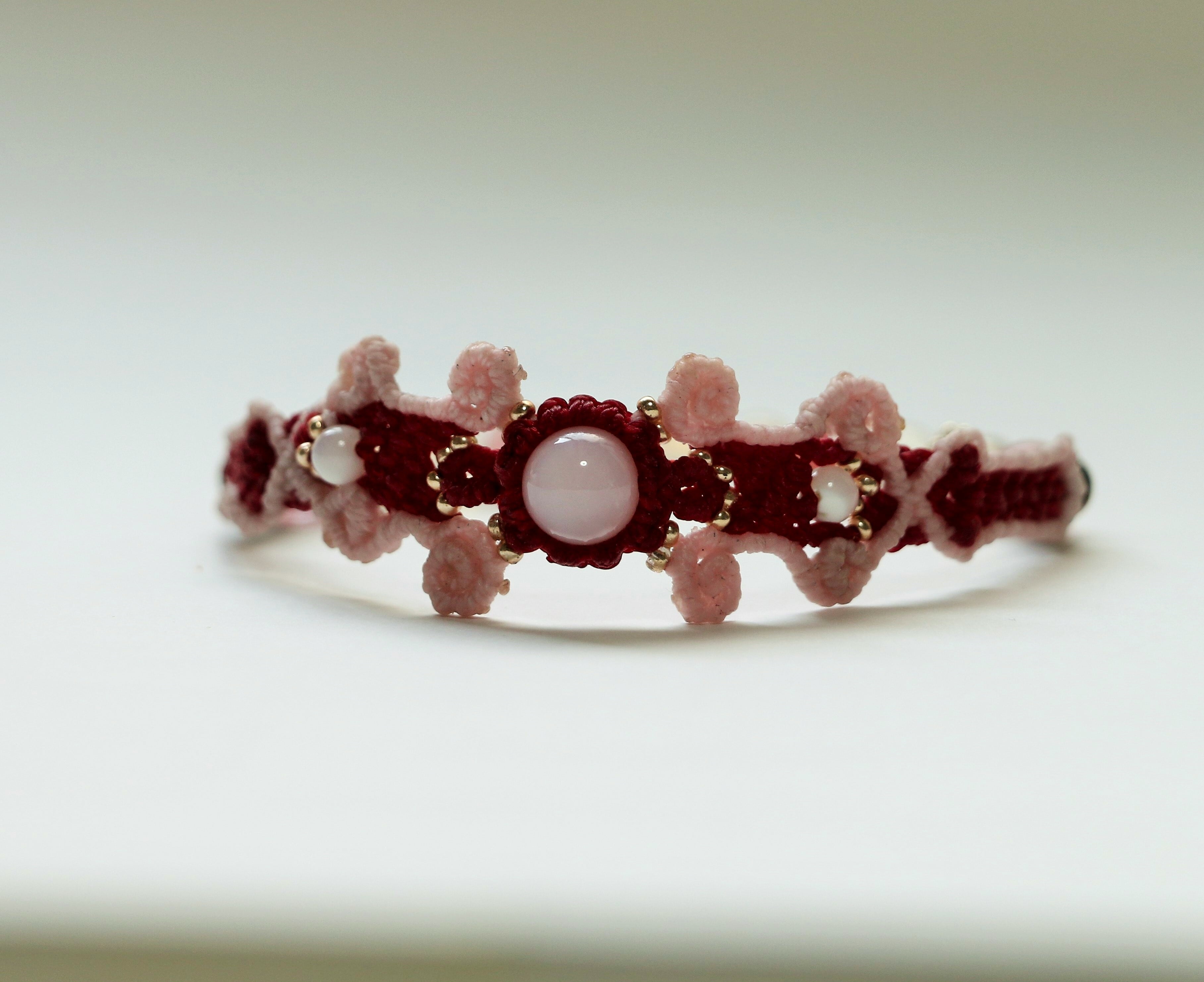 ゴム紐マクラメアクセサリー/ピンクオパールのブレスレット