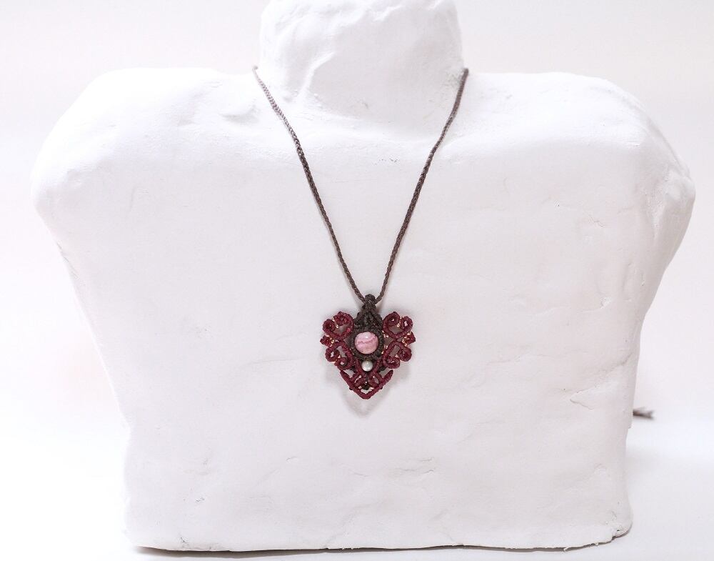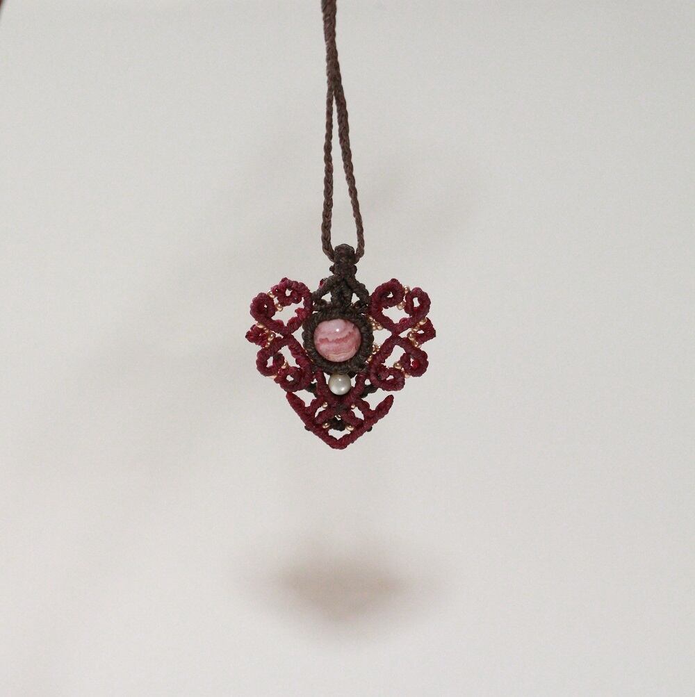 マクラメアクセサリー/インカローズのハート型ネックレス